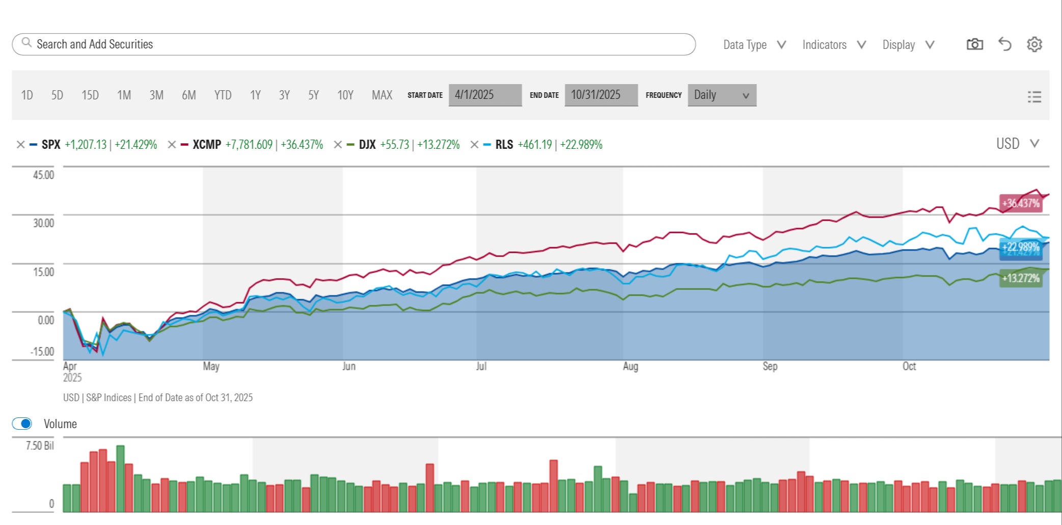 Although the market dipped in April 2025 amid loud headlines, SPX (S&P 500), XCMP (Nasdaq Composite), DJX (Dow Jones Industrial Average), and RLS (Russell 2000) all posted strong gains over the following 6 months. If investors panicked in April, they might have missed out on long-term returns.